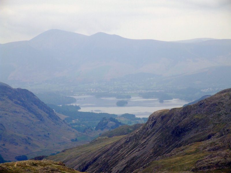 Zoom zum Derwent Water und zum Skiddaw - trotz des trüben Wetters ist die Sicht gut.