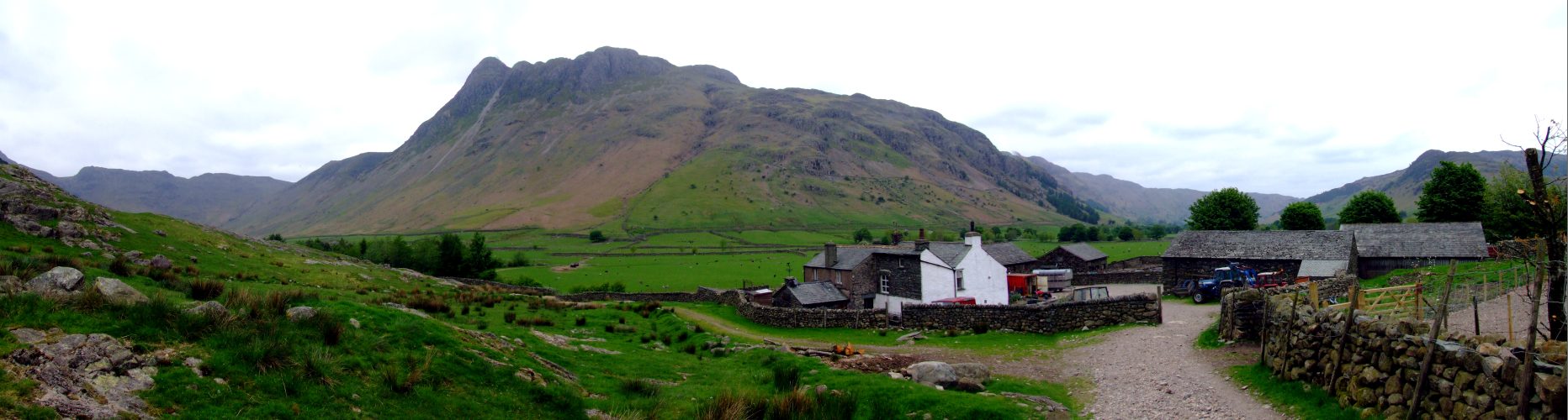 Stool End Farm und die Langdale Pikes in einem Panorama
