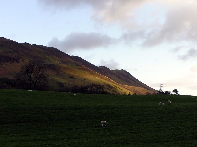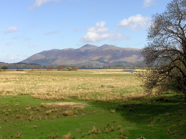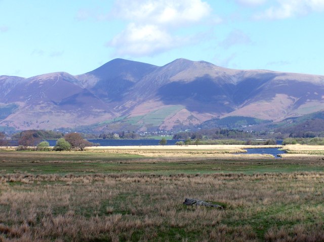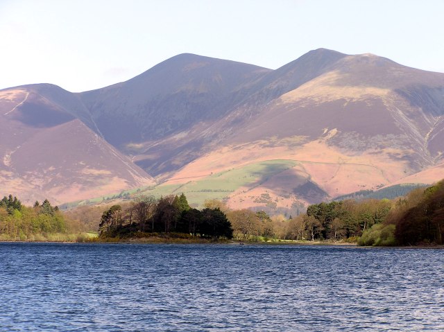 Nachdem wir nun vom Honister Pass hinunter und durch das wunderschöne, schmale Borrowdale gefahren sind, wird das Tal nun wieder weiter und mach Platz für das Derwent Water. Dahinter der Skiddaw (931 m)