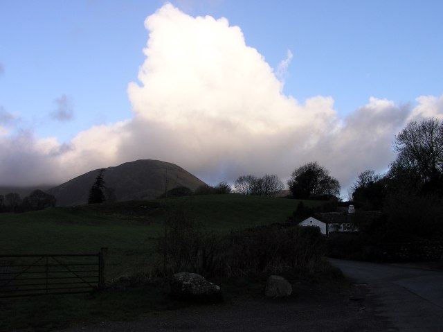 Rasch ziehende Wolken hinter dem Burnbank Fell, im Vordergrund Rose Cottage.
