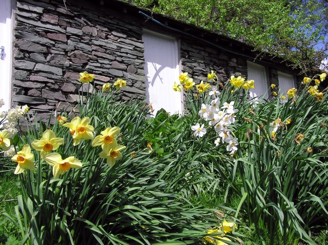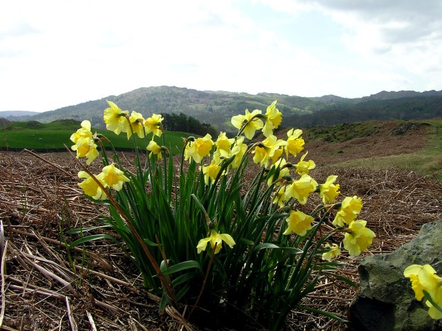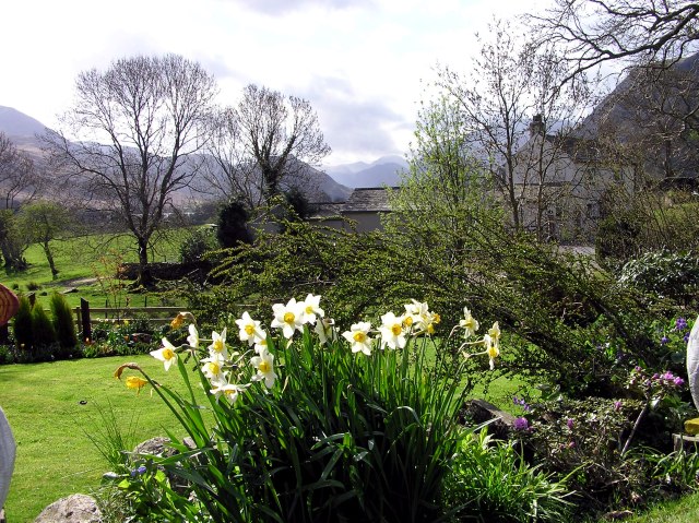 Noch einmal die Narzissen im Garten, diesmal mit dem Buttermere Tal dahinter.