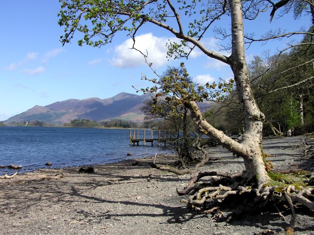 Das wunderschöne Ufer des Derwent Water ist hier von alten Platanen bestanden.