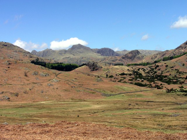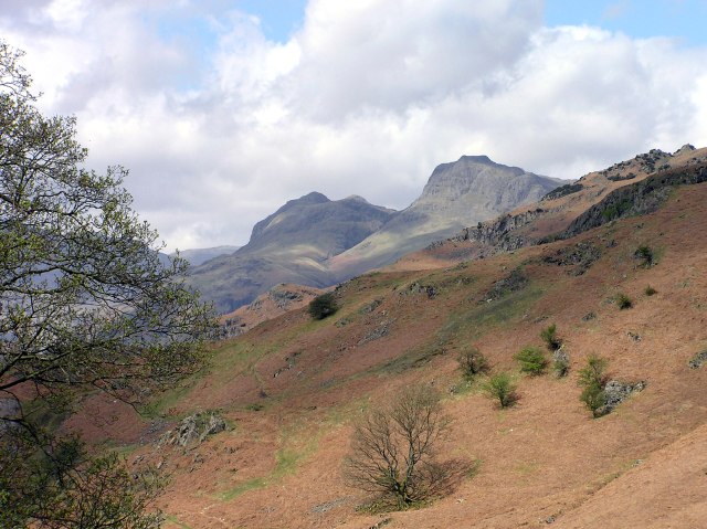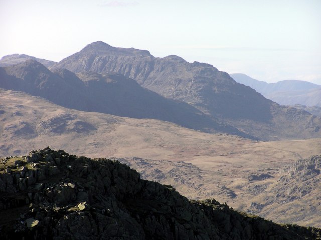 Die Scafells (Scafell und Scafell Pike - "Scaw" heißt "Scharte" und bezeichnet wohl den charakteristischen Einschnitt zwischen den beiden Gipfeln, der von beiden Seiten aus gut zu sehen ist)