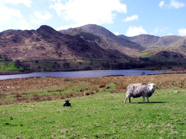 AM oberen Ende vom Buttermere, mit den "berühmten" Buttermere Föhren und Hay Stacks im Hintergrund