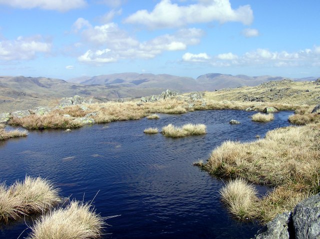 Eine kleine Lacke und Lingmoor Fell in der Mitte des Hintergrunds.