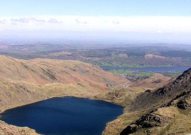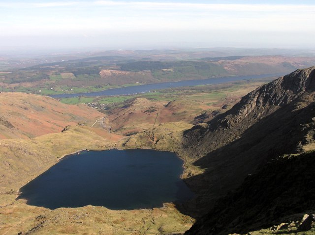Levers Water Reservoir, mit Coniston Water dahinter.