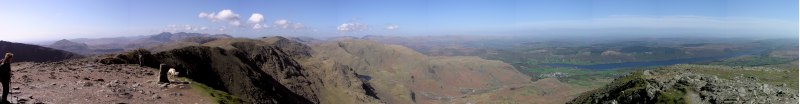 Gipfelpanorama vom Coniston Old Man. Ins Bild klicken für eine größere Darstellung.