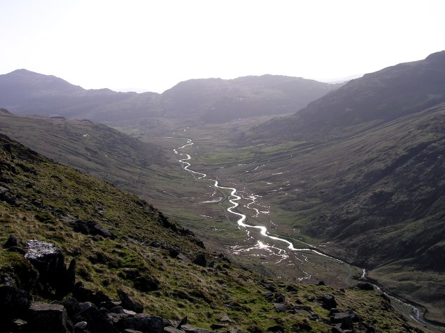 Wunderschöne Abendstimmung im oberren Esk - Tal, mit den Scafells im Hintergrund.