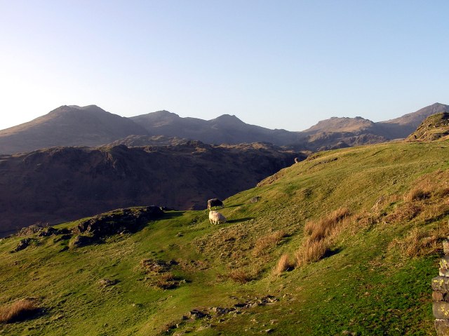 Am Bergkamm angelangt, haben wir nun einen großartigen Blick auf die Scafells mit der Scafell Pike (978 m), England´s höchstem Berg.