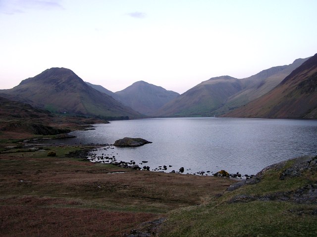 Später, die Sonne ist nach einem feinen Abendessen in einem guten Pub im Eskdale schon untergegangen, machen wir am Rückweg einen kurzen Umweg zum Wastwater, für einen kurzen Halt am klassischen Wasdale - Aussichtsplatz: Great Gable ist die Pyramide im Hintergrund.