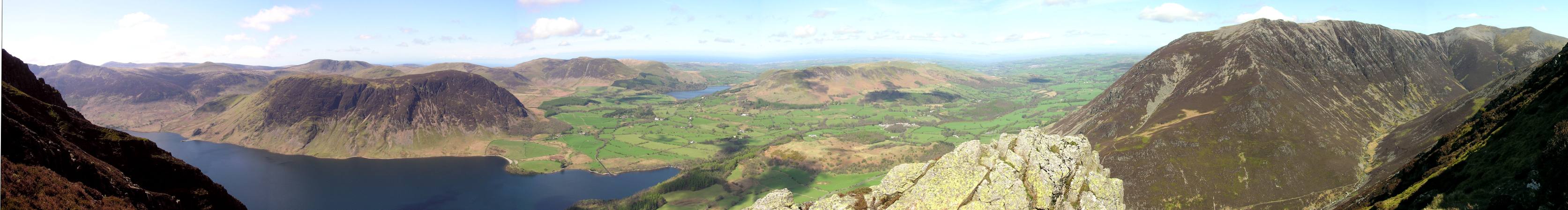 Western panorama from half way up Grasmoor. Whiteside ridge and Hopegill head to the far right.