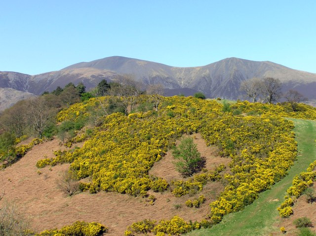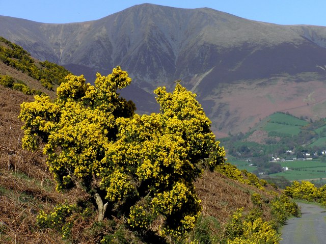 Shortly before the end of the ridge coming down from Grisedale Pike to Braithwaite, I decided to go straight down through droughty Bracken, because I saw some beautiful gorse down in the Coledale valley. So there are some pictures, with the local landscape in behind ...