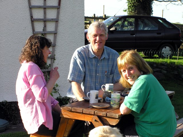 Back home in Oak Cottage garden. Jill, Roger and Ann