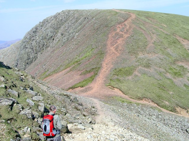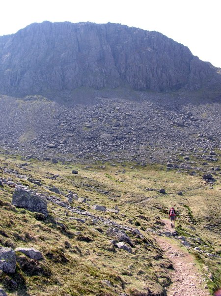 Having climbed the screes, we now join the path coming up from Sty Head. The Lngadale Pike in the far distance ...