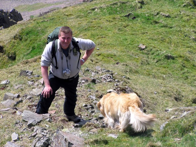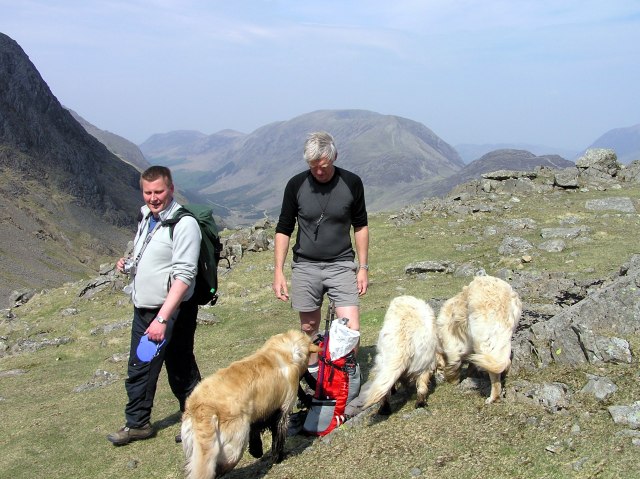 Roger and the dogs, with the Scafells behind.