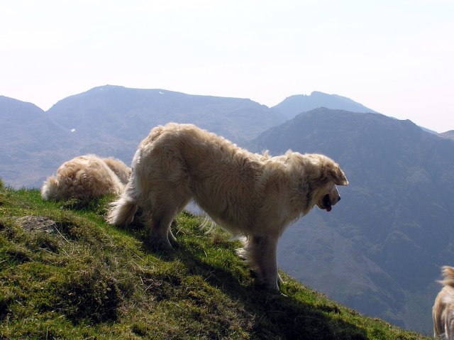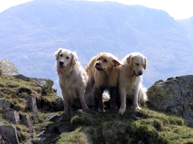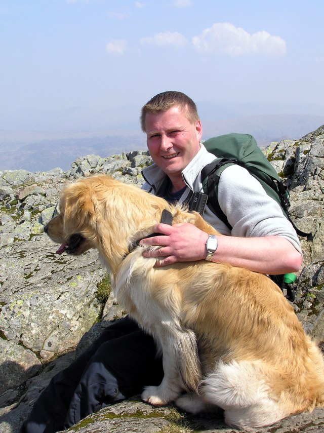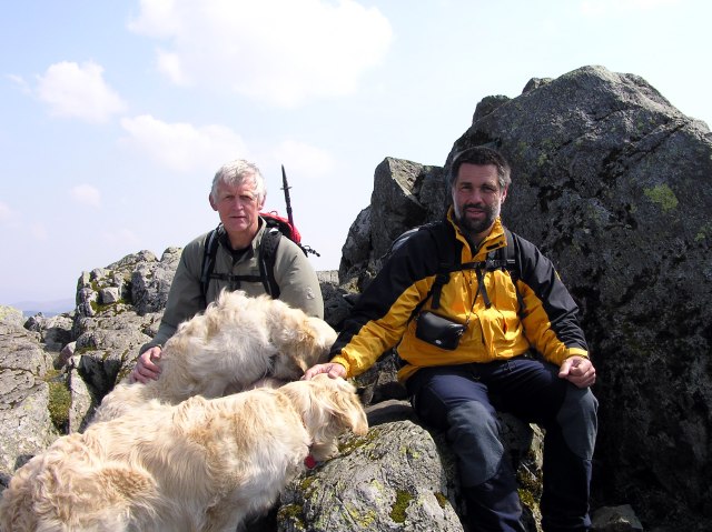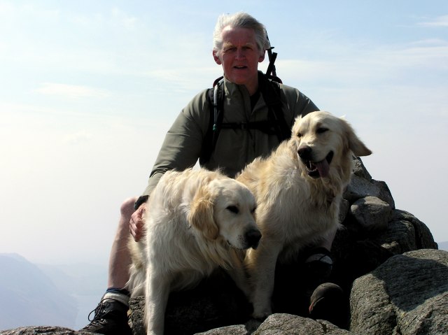 Roger and his dogs on the summit of Great Gable