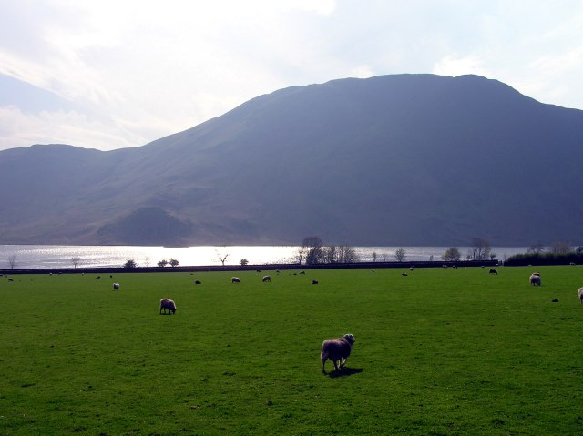 Farewell to the lakes - a last reflection of sunlight in Crummock water, with Mellbreak behind.