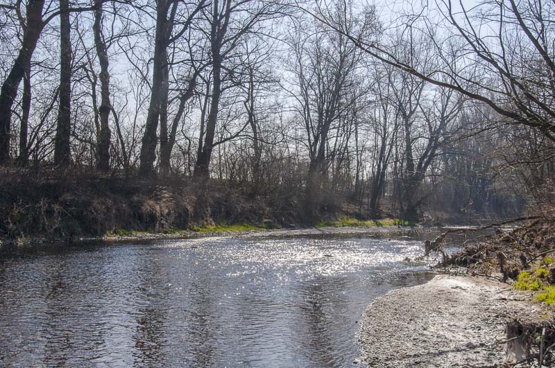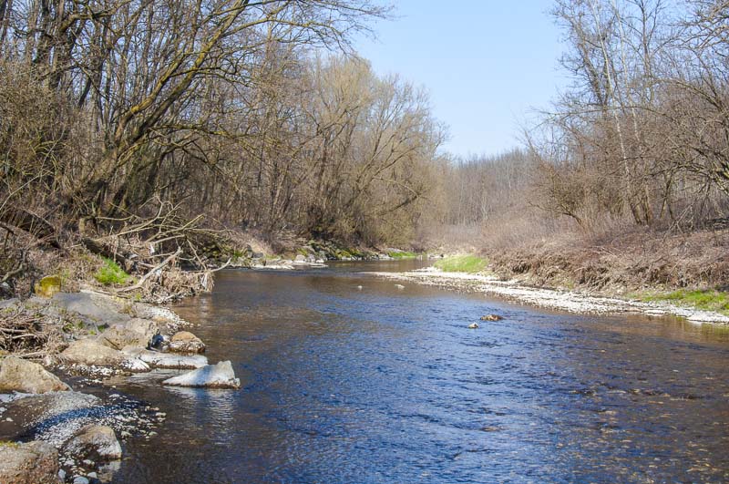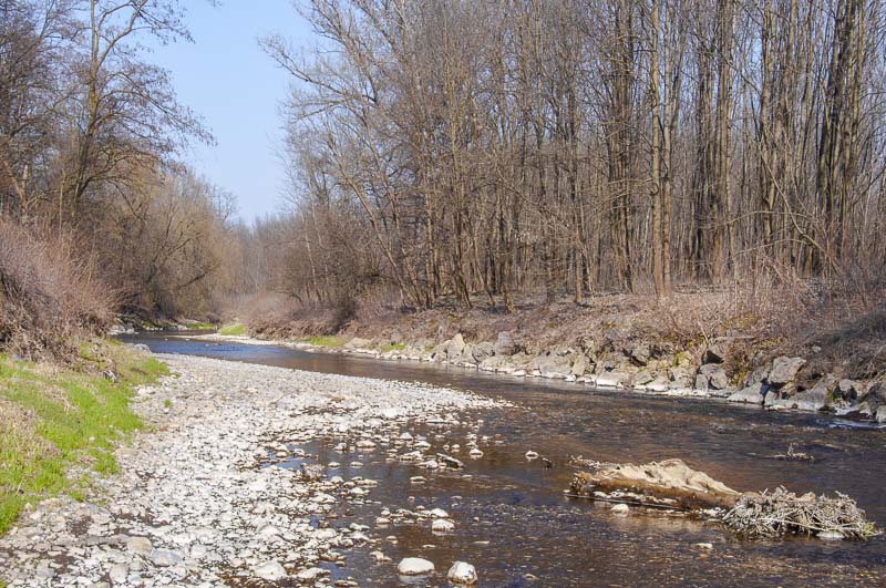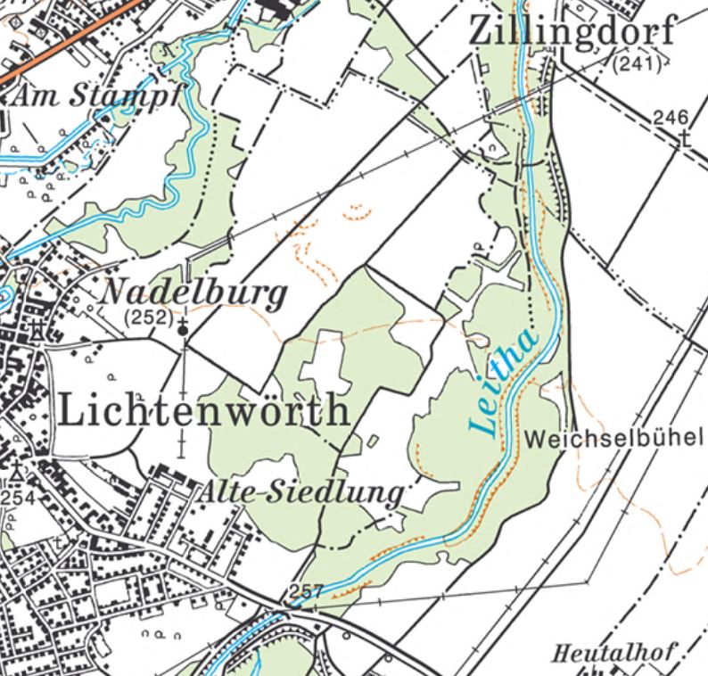 Ich gehe durch den Wald Richtung Fluss - und stehe ganz plötzlich vor einer Böschung. Die Leitha ...