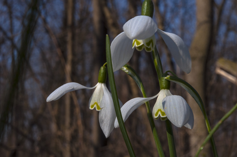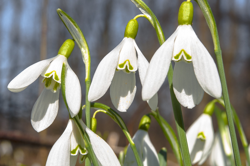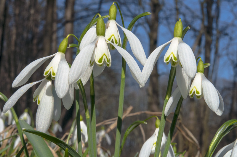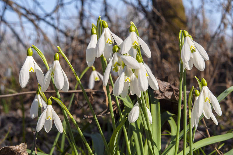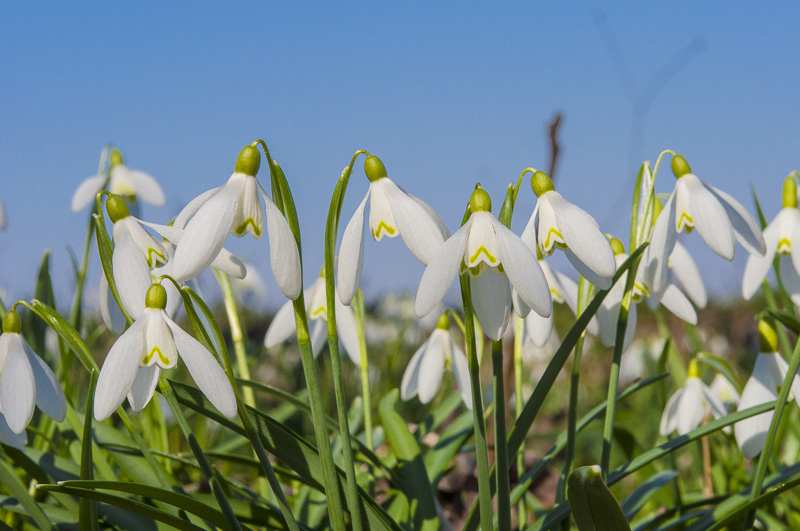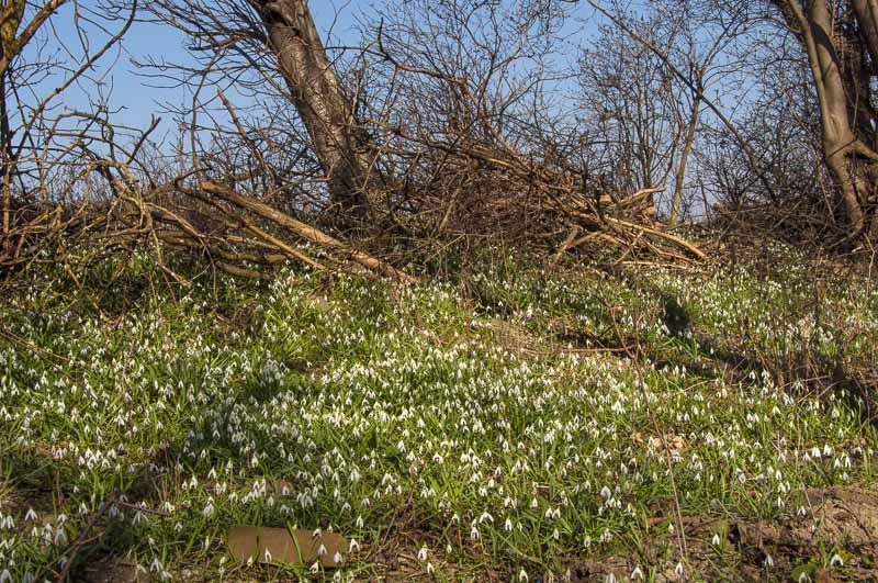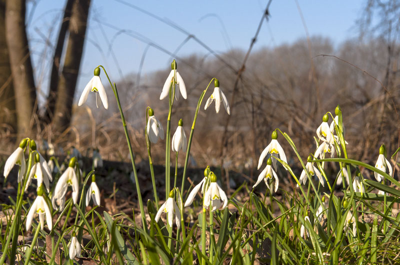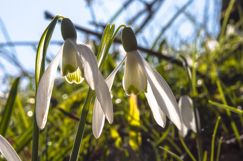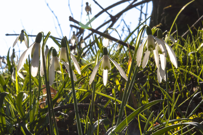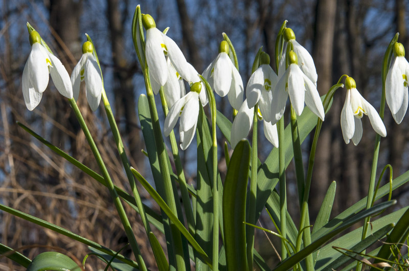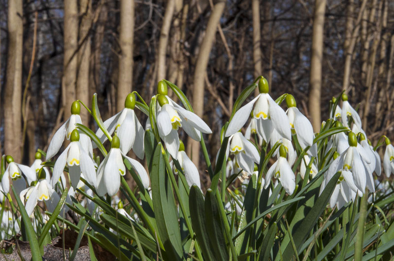 Ich habe Glück: volle Blüte der Schneeglöckchen.