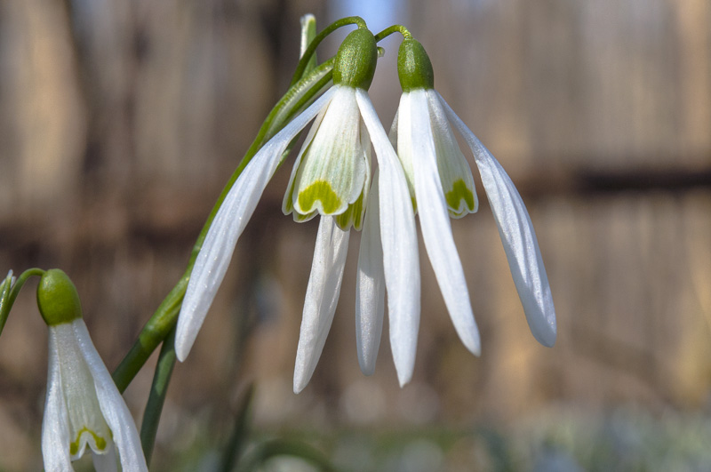 Diese Schneeglöckchen haben breitere Blütenblätter.