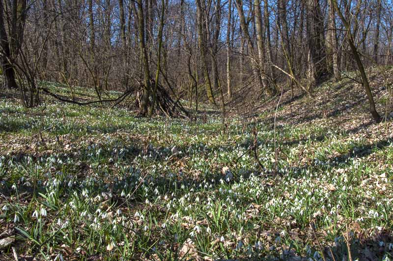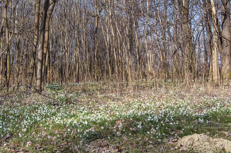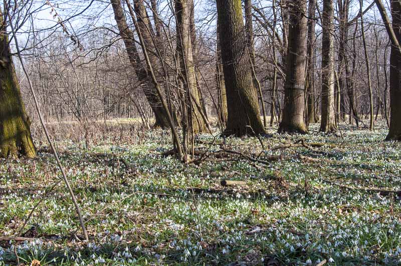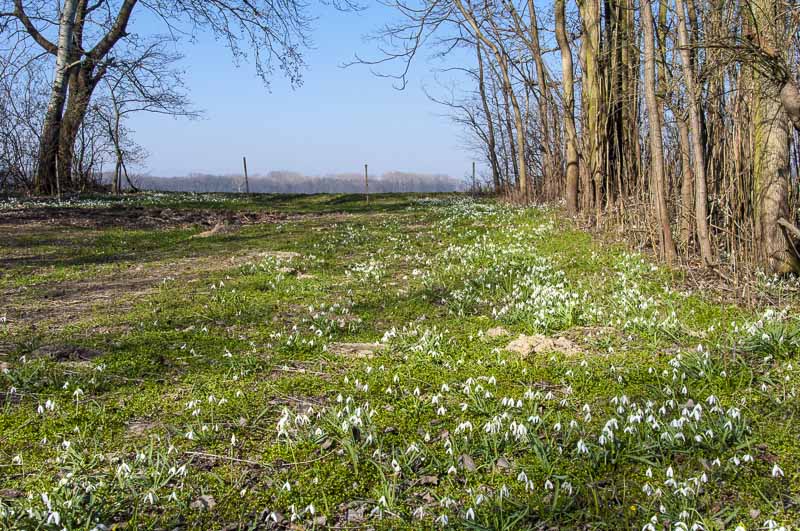 Eine ganze Woche wolkenloses Wetter im März bedeutet: die Schneeglöckchen werden nicht mehr lange blühen. Ich nutze also einen freien Vormittag, um in die Lichtenwörther Au zu fahren. Der Auwald links der Leitha ist um diese Zeit voll mit Millionen Schneeglöckchen.