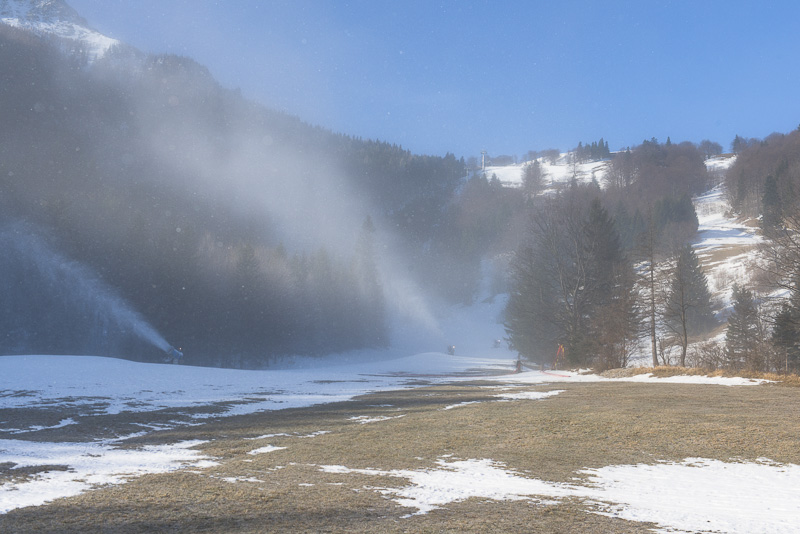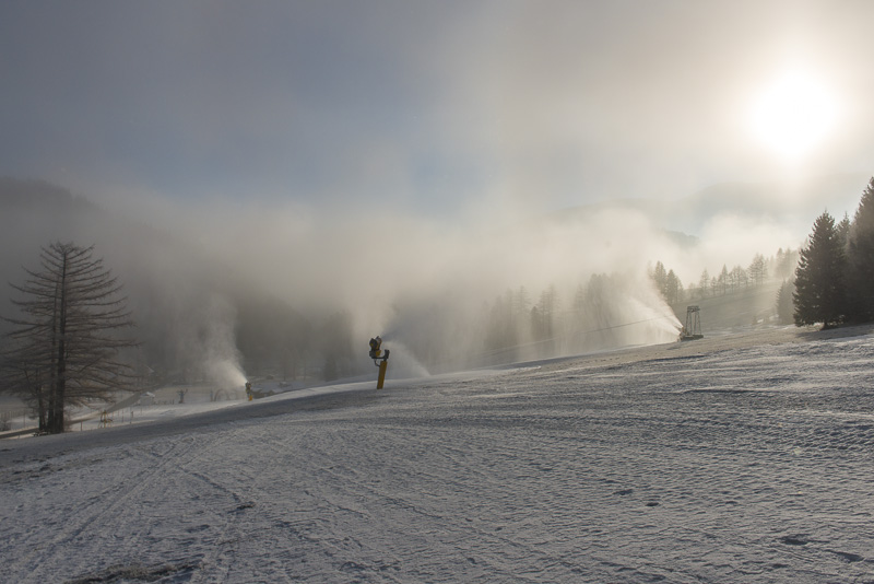 Ohne Kunstschnee wäre schifahren hier schon schwierig ...