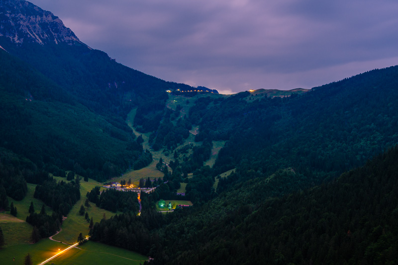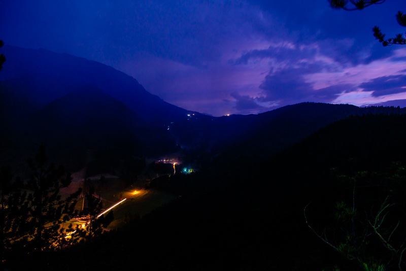 It has started to flash and thunder. I decide to stay for another few minutes, maybe a flash loses its way onto my camera chip ... however, the blue-grey haze on Schneeberg (far left) gives cause for concern. Indeed, I cannot stay for long, because it starts to rain over here too.