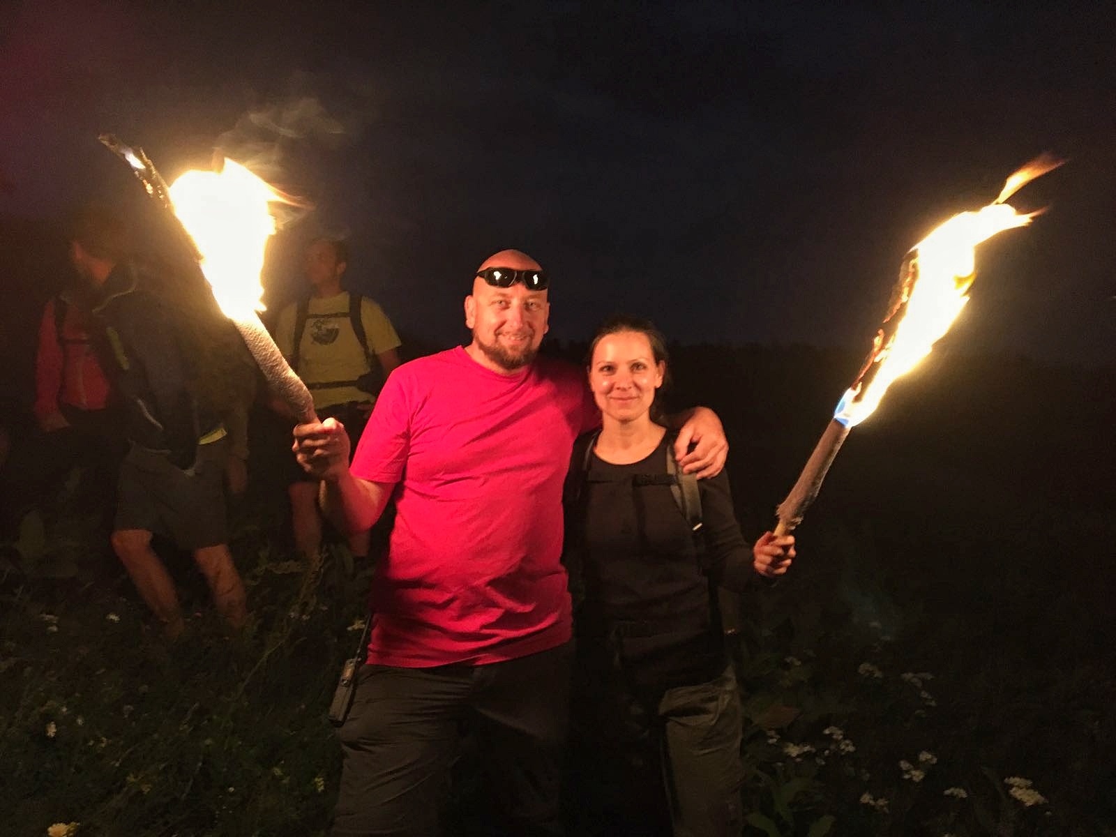 A film team from Servus-TV has filmed the whole action from the ruin in Losenheim, and also has now arrived at the Almreserlhaus. The cameraman now wants to take some close-ups of a burning red torch ...