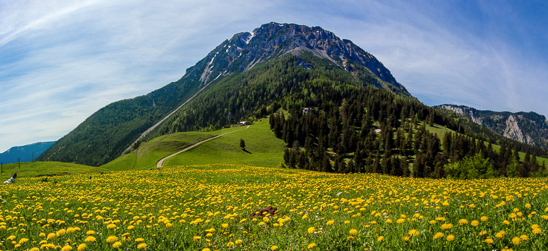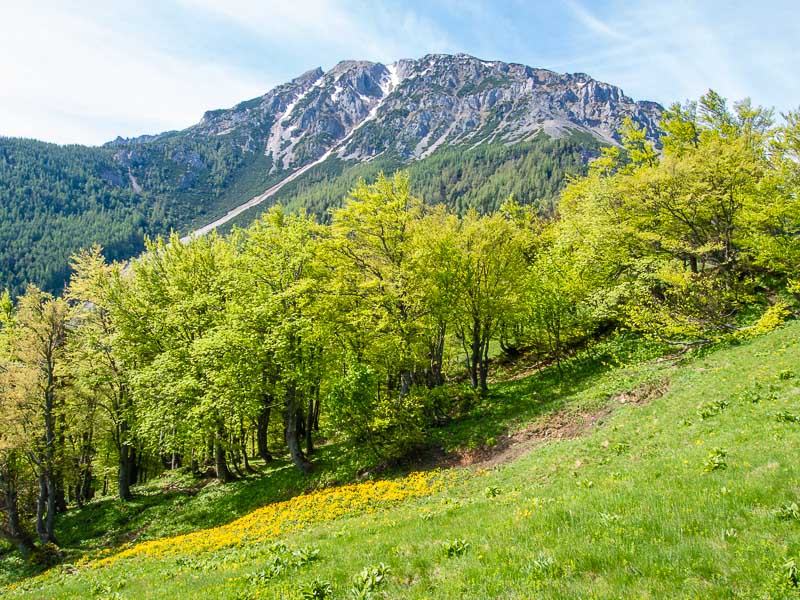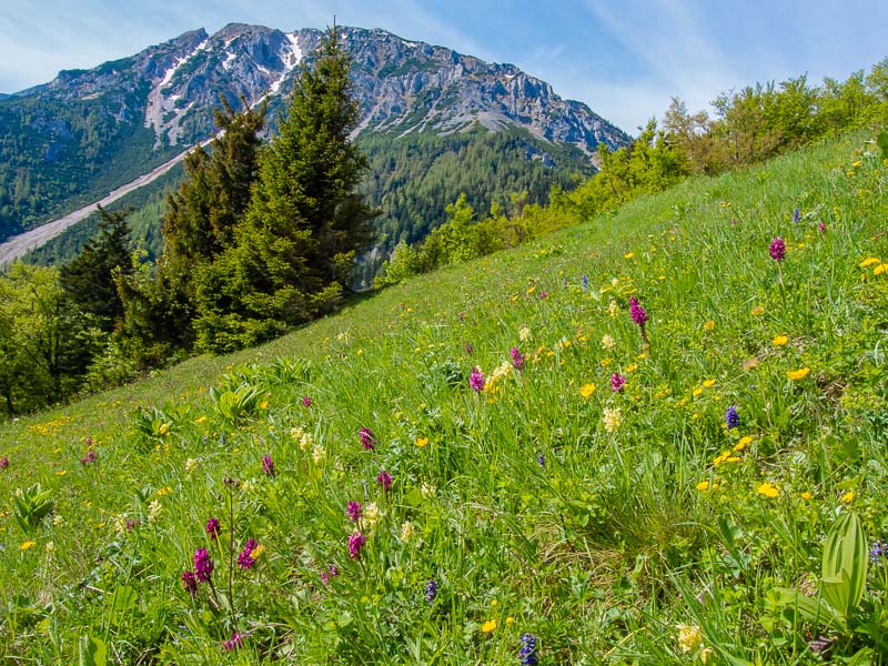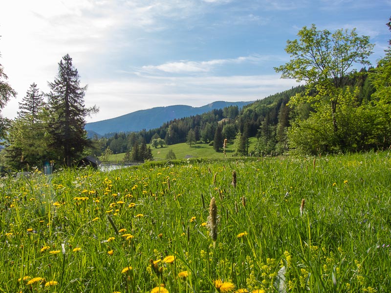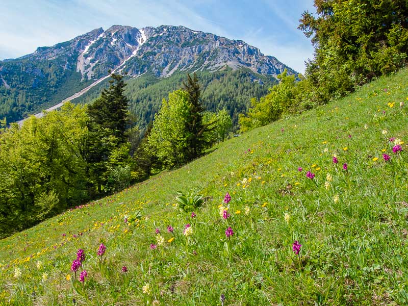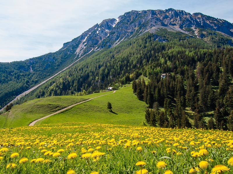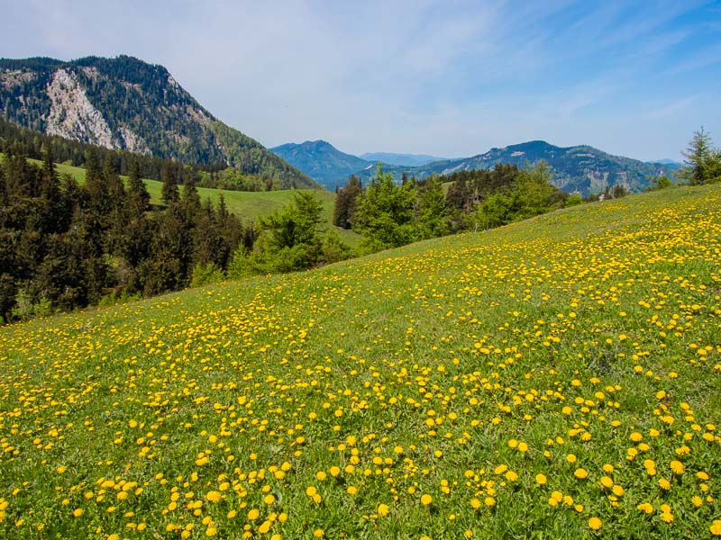 Near the Almreserlhaus, the grass is covered with cowslips.