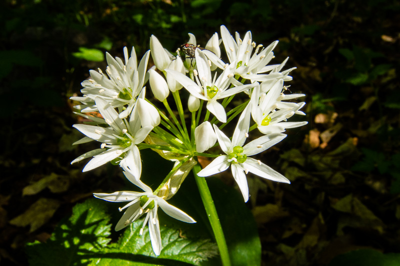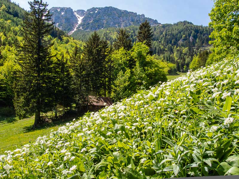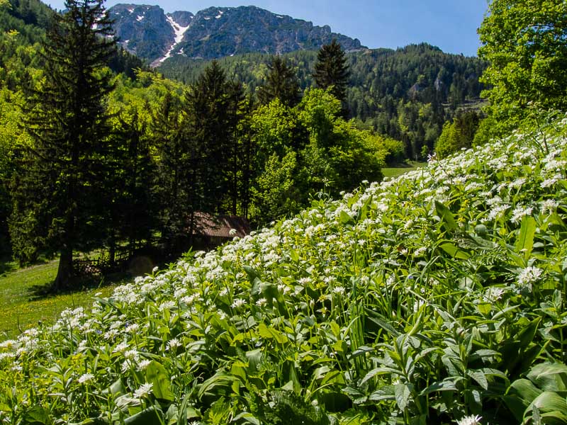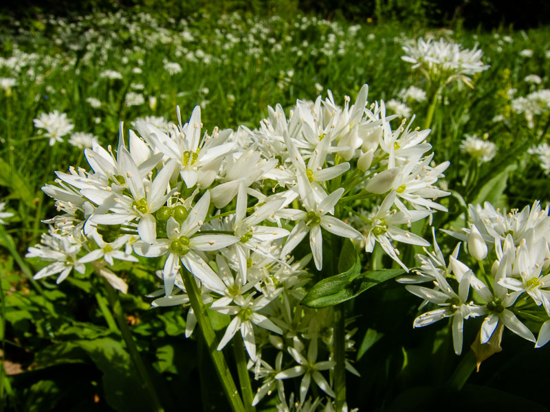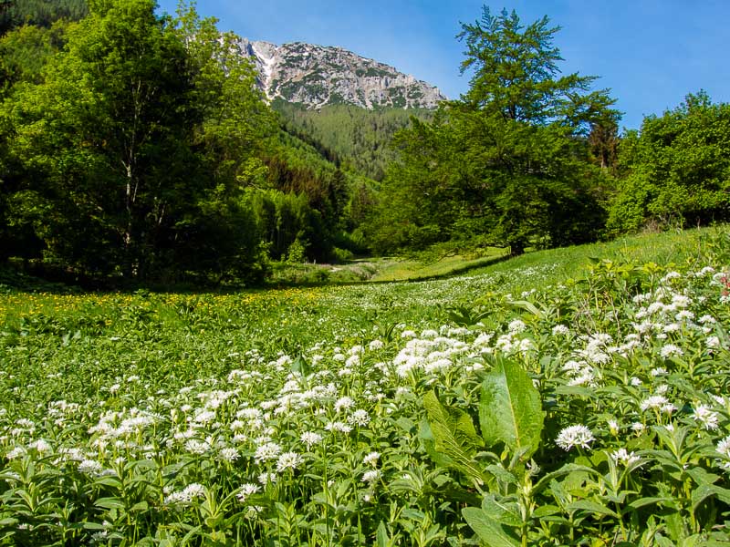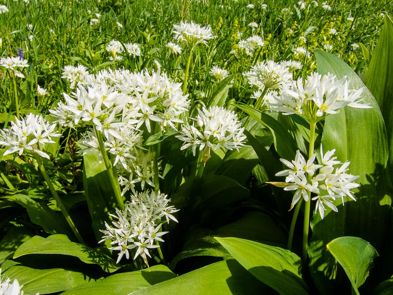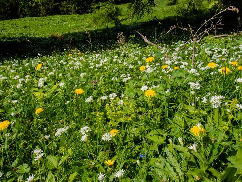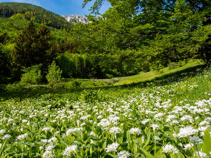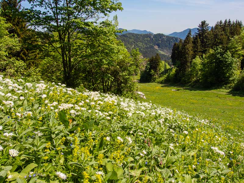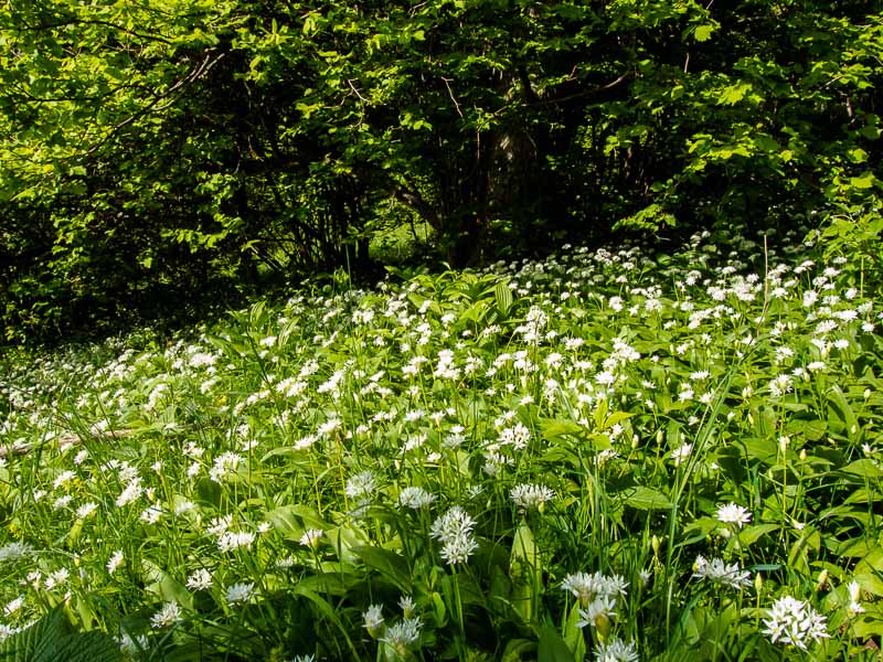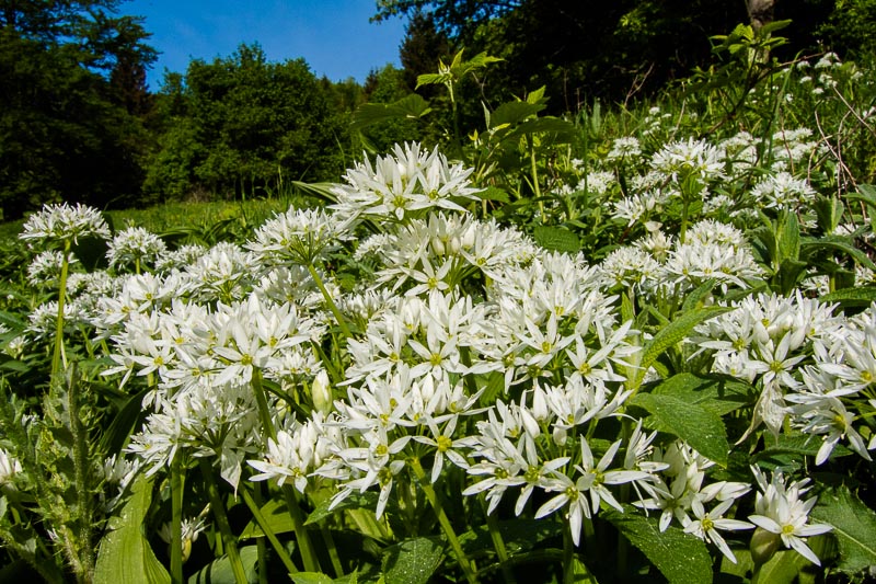 Ramson (Allium ursinum) in abundance, with the view to the Laning Ries.