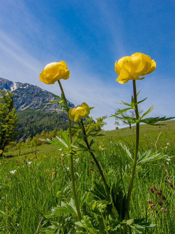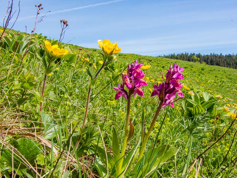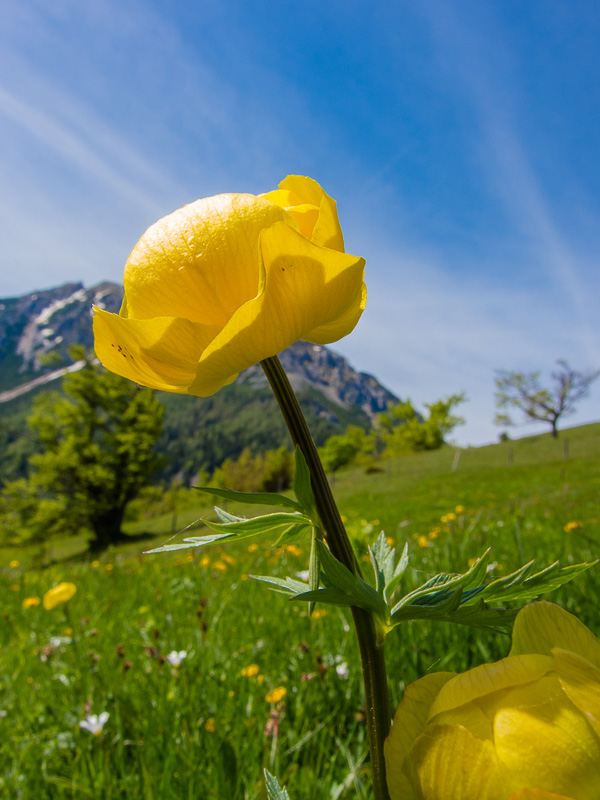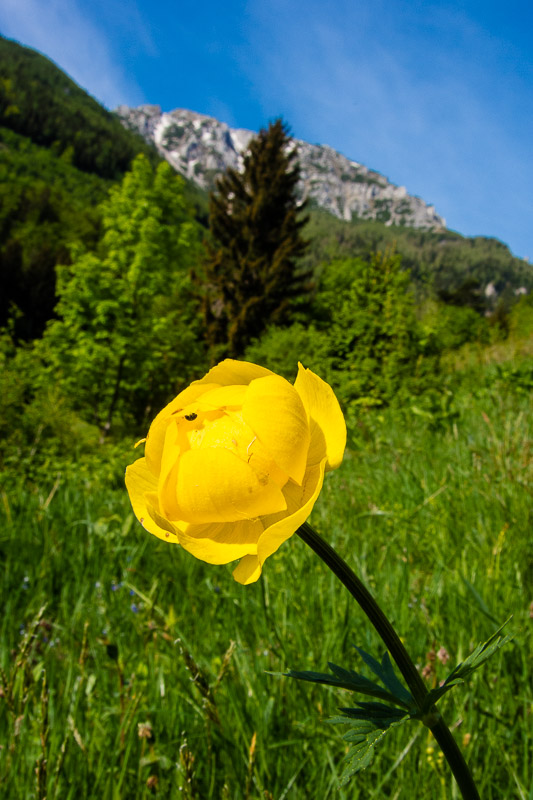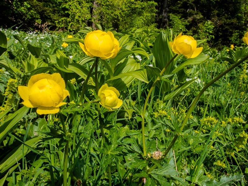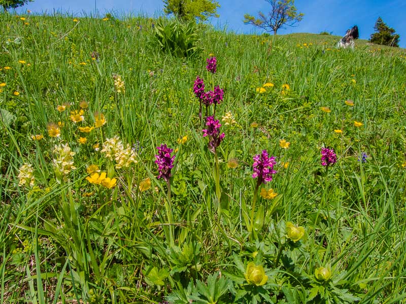 I proceed walking, climb under a barbed wire - and the beauty is gone. This area is pasture and manured, not a single orchid. A few Globeflowers (Trollius europaeus).
