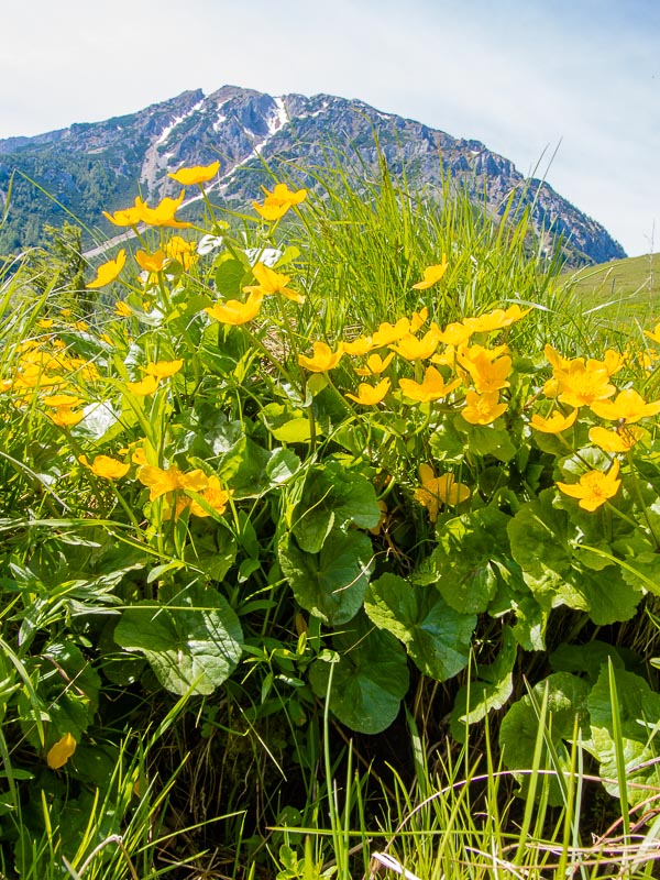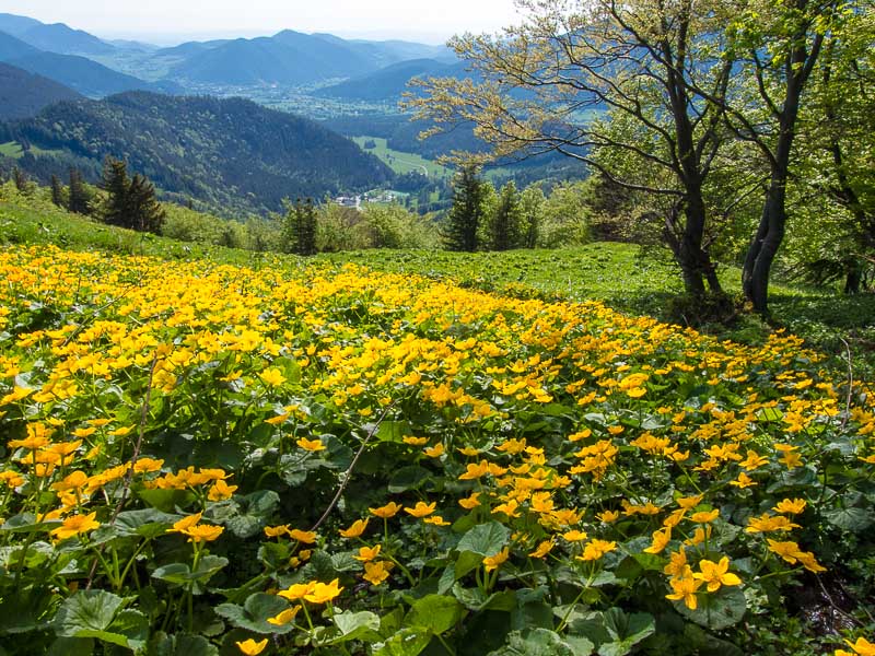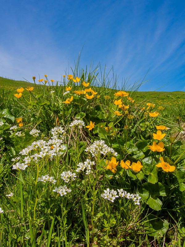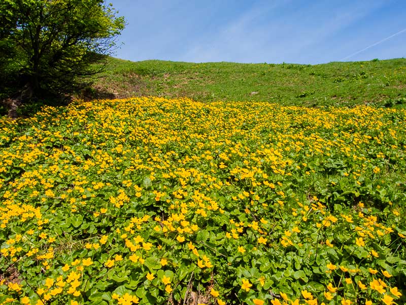 Kingcups (Caltha palustris) and the view back to Losenheim.