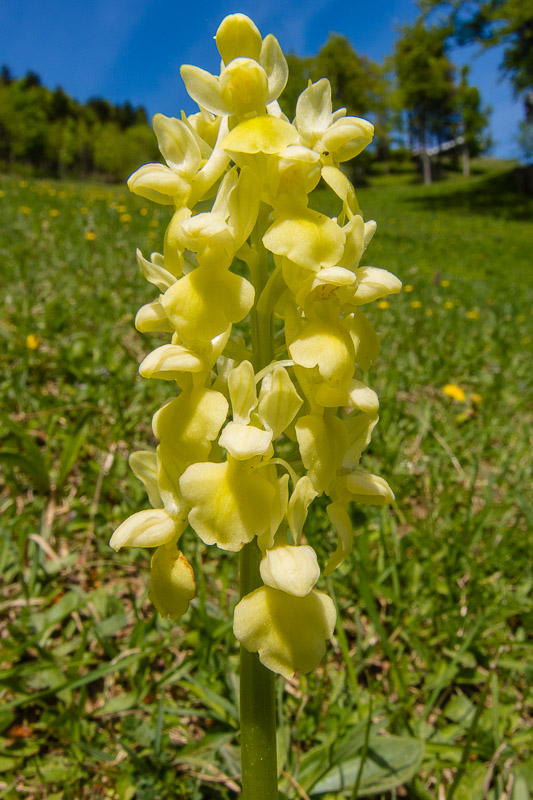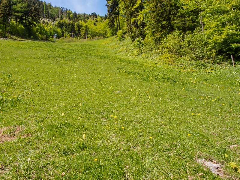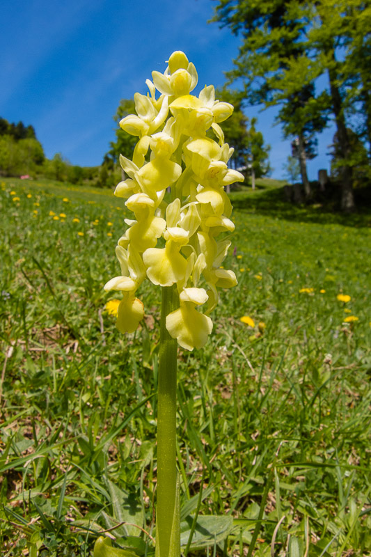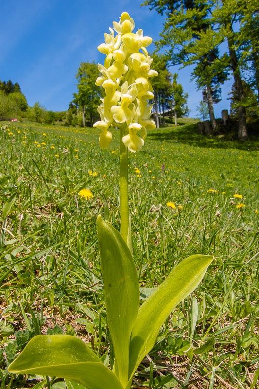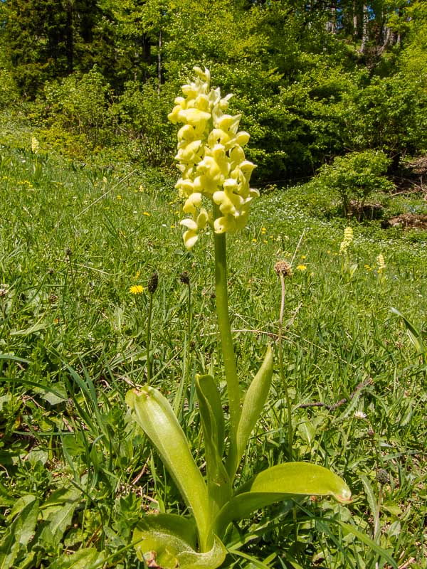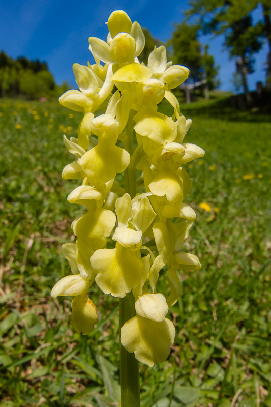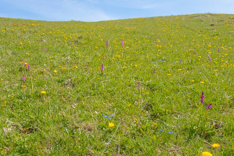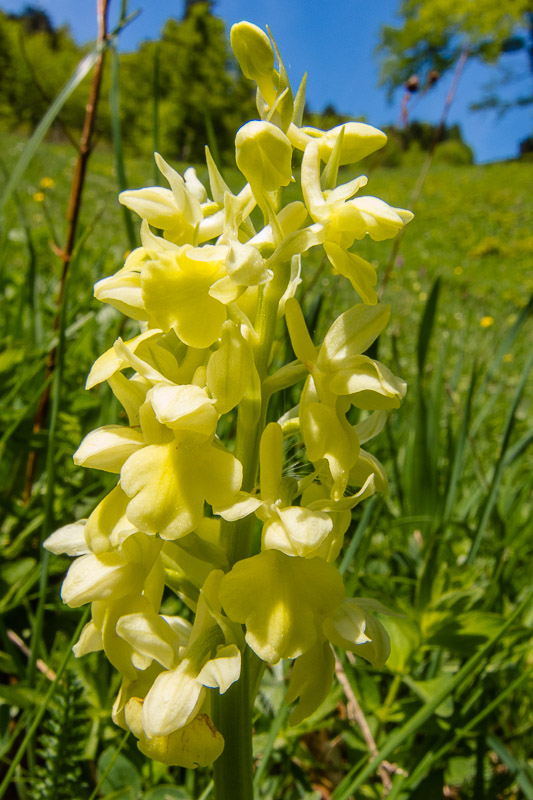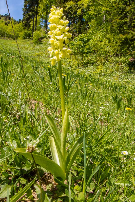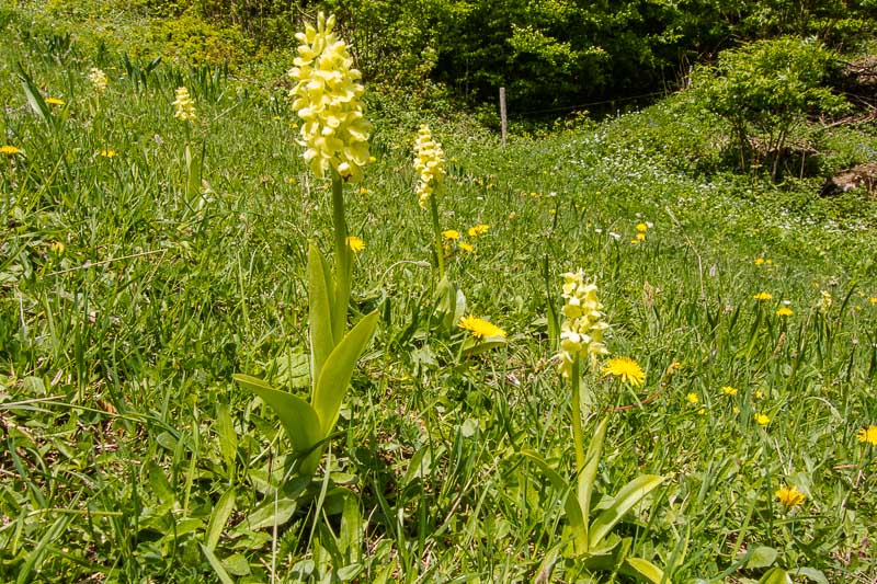 Pale-flowered orchid (Orchis pallens) in abundance.