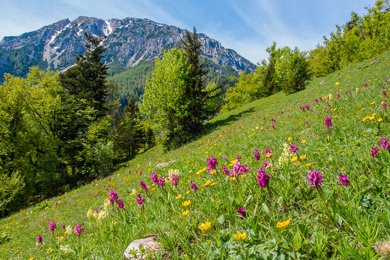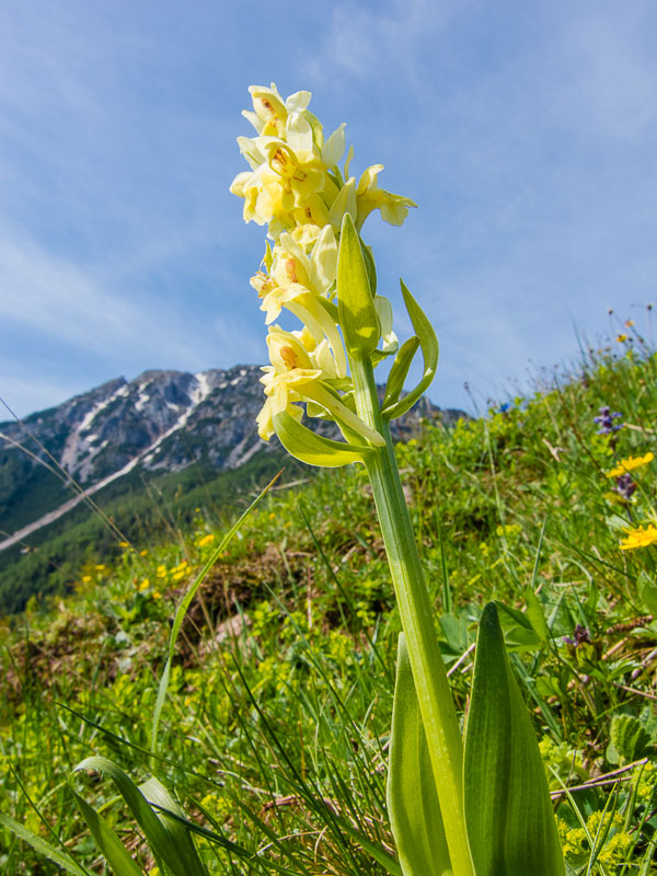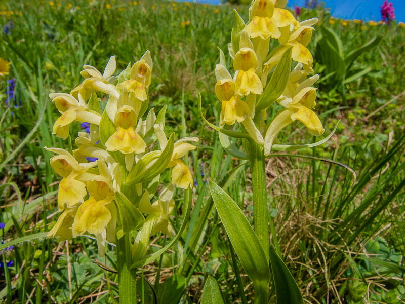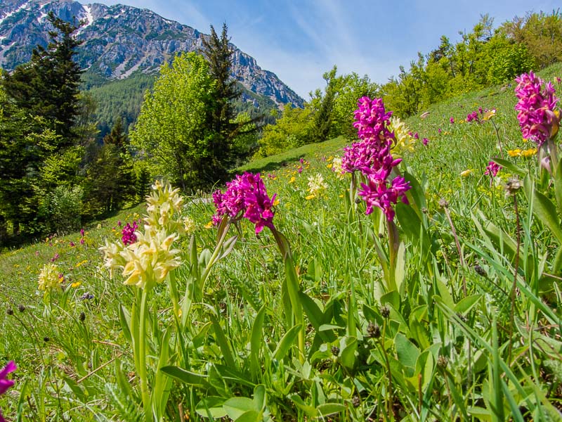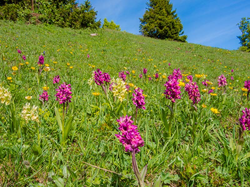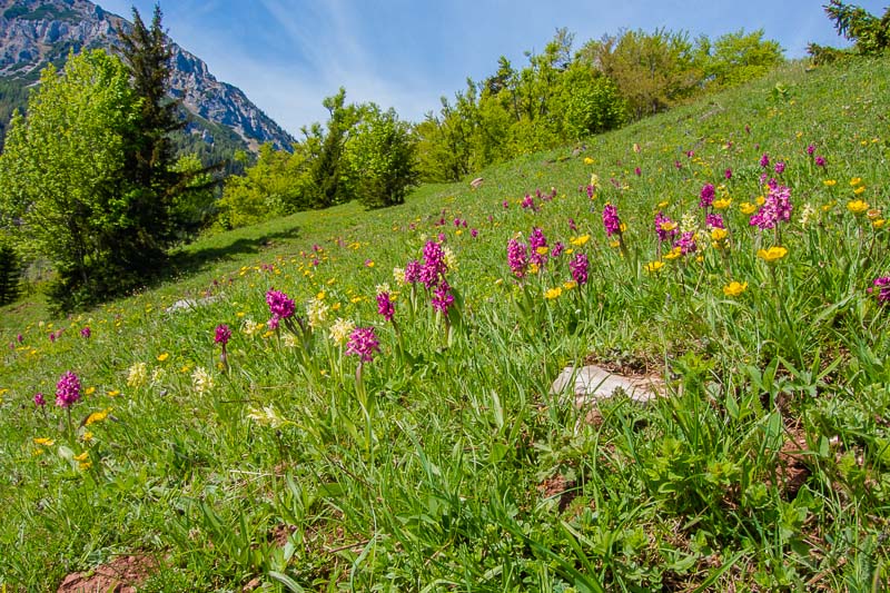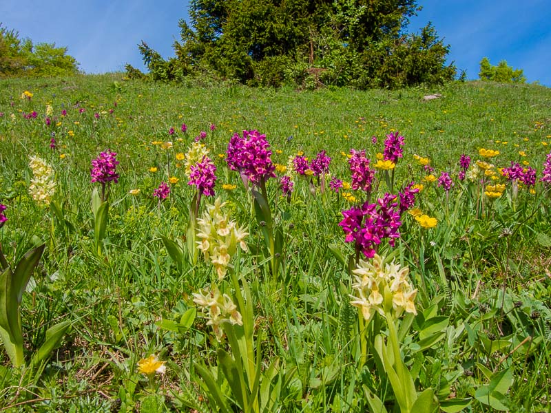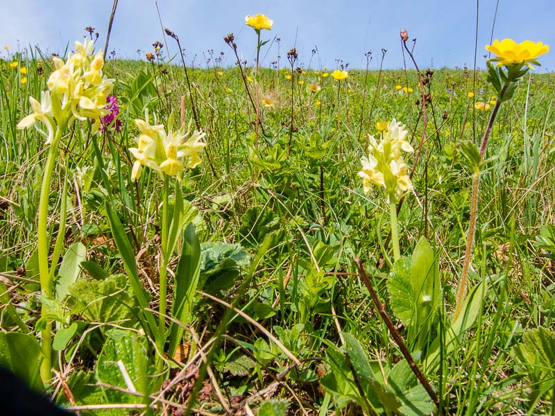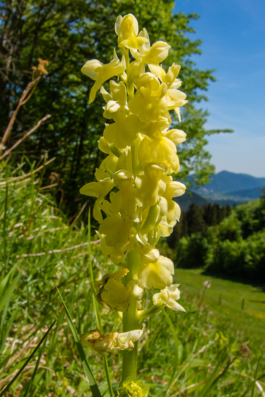 Pale-flowered orchid (Orchis pallens) in abundance.