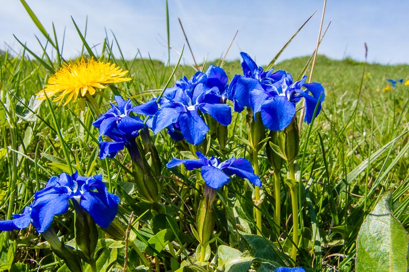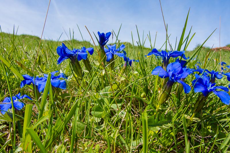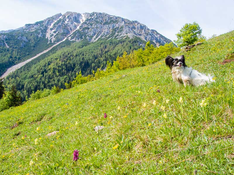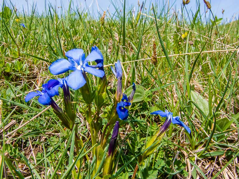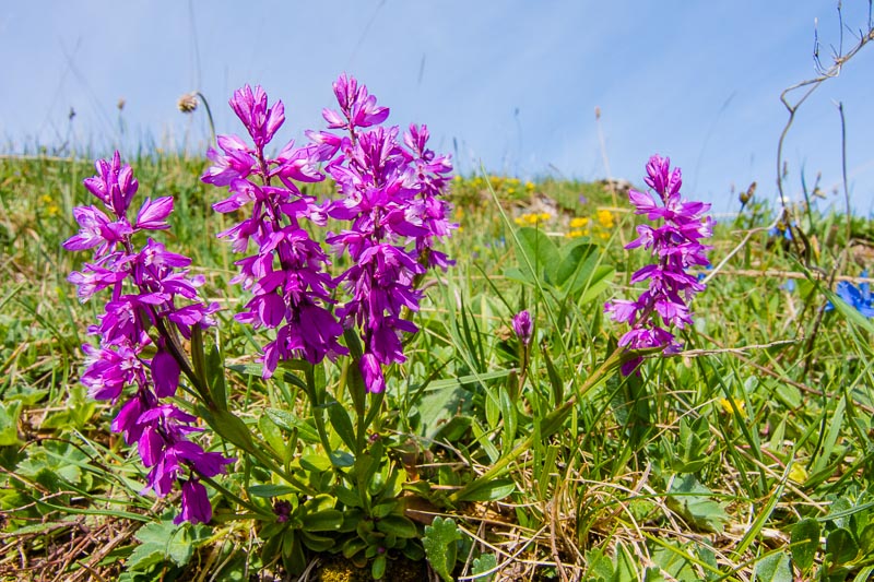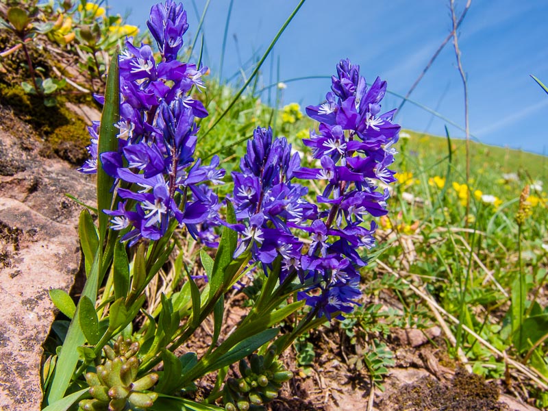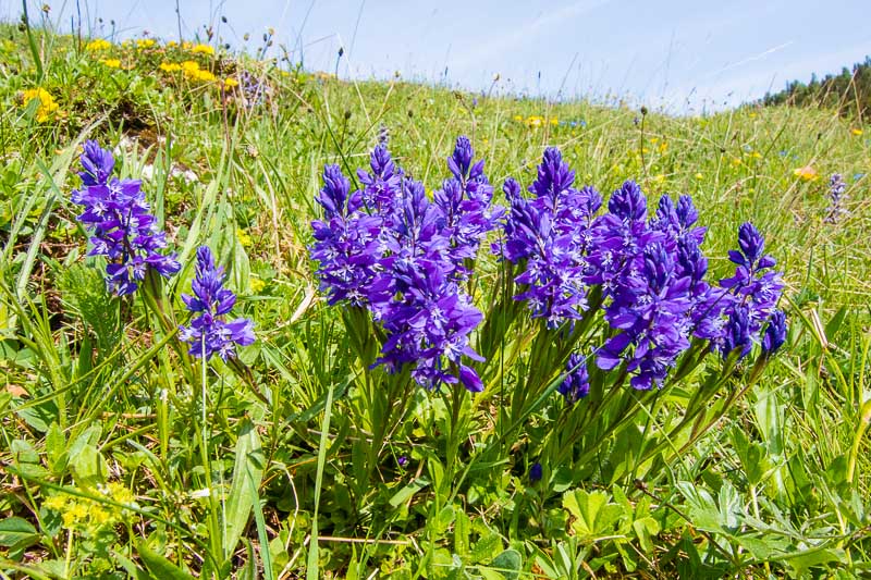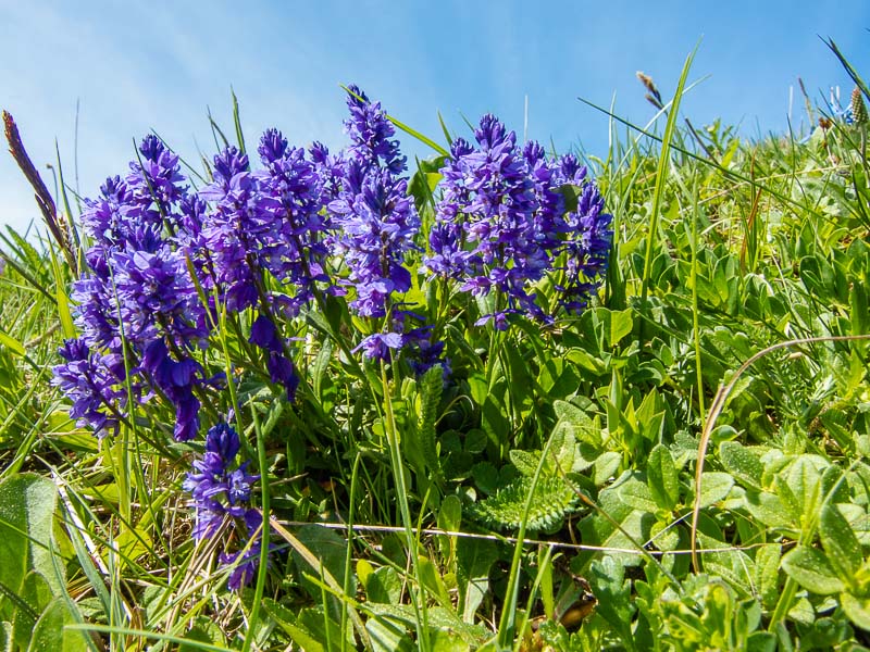I walk back, passing by the Edelweißhütte (sorry, no more time for a drink!). More Alpine Milkwort (Polygala vulgaris) on the ridge.
