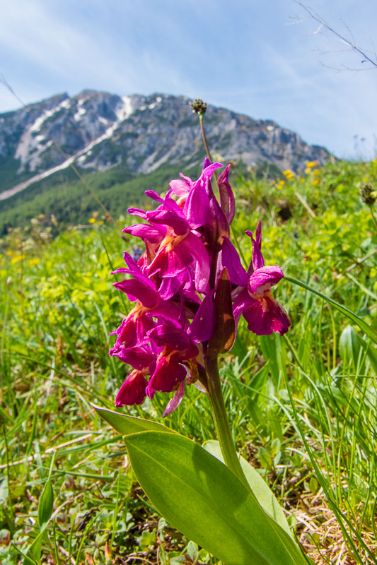 Even down here a first exemplar of Elder-flowered orchid (Dactylorhiza sambucina), this one in red.