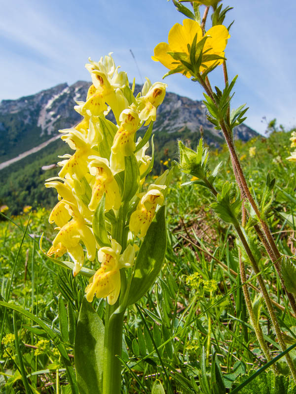 Elder-flowered orchid (Dactylorhiza sambucina) and Alpine Avens (Geum montanum)