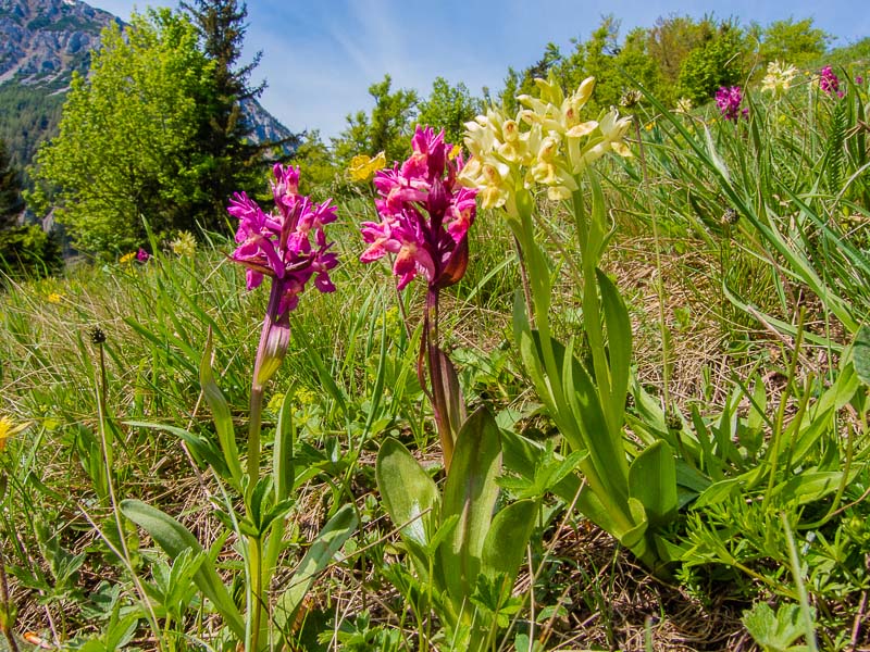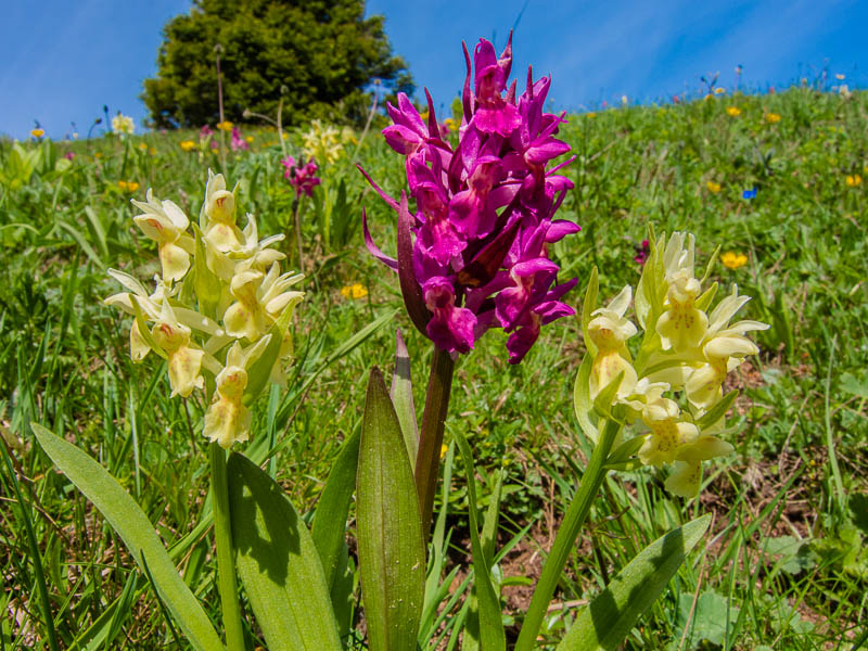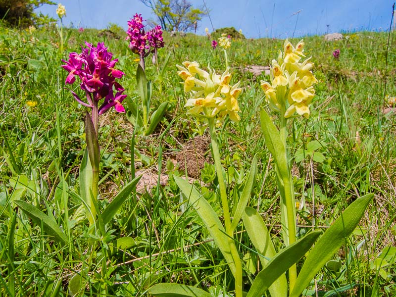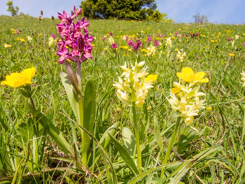 Elder-flowered orchid (Dactylorhiza sambucina) in both colours.
