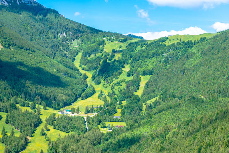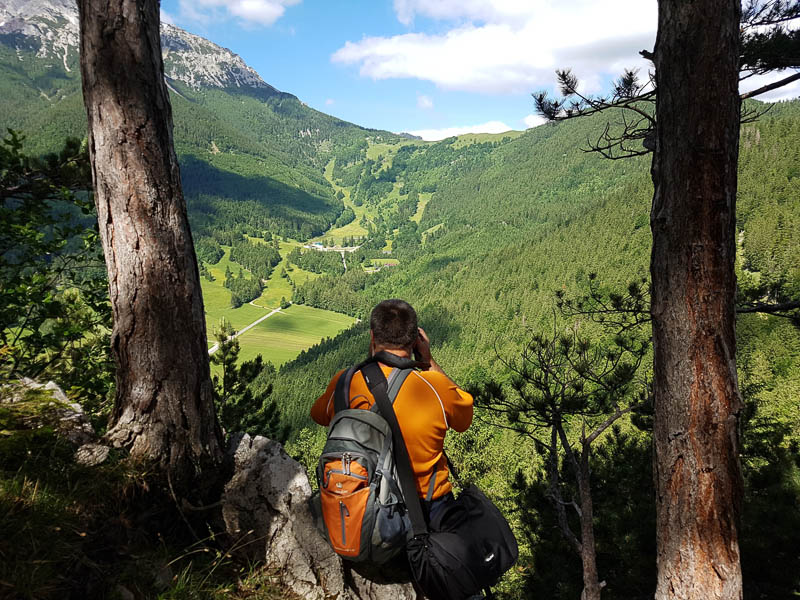 Afterwards, however, after another short leg, we find a hole in the forest, above a rock, where we get a beautiful view to the Fadensattel.