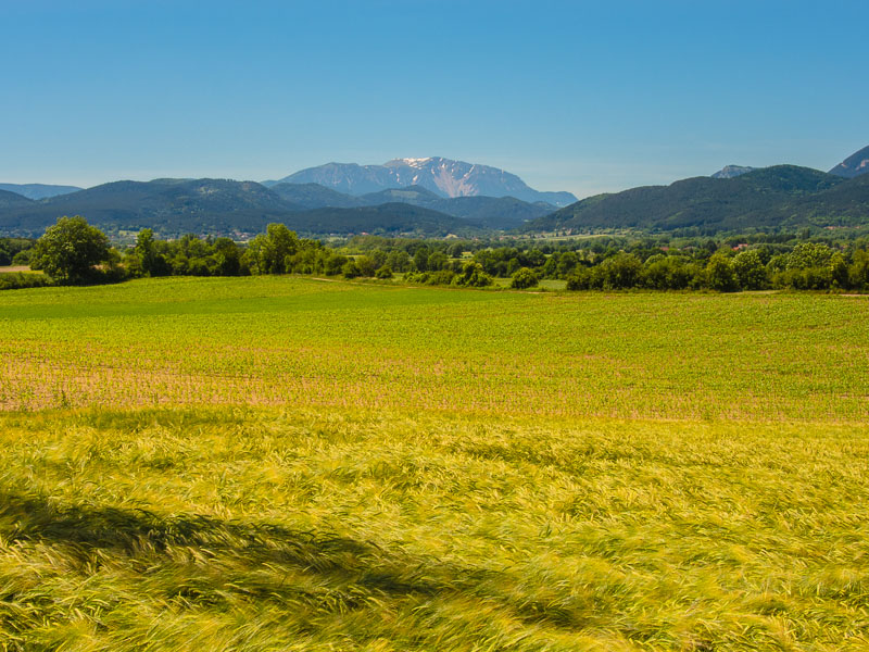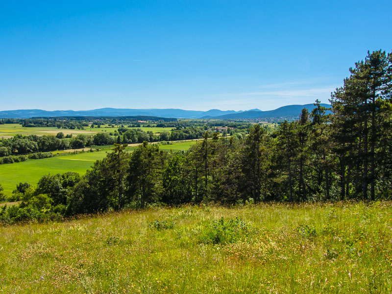 9.6.2017 - a short "midday ride" with the mountain bike on gravel roads to Willendorf and back via Strelzhof. View from the wayside shrine near the transpondfer to Schneeberg. Early summer fields.