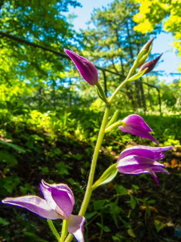 In the palace grounds of Strelzhof a few Red Helleborines (Cephalanthera rubra) are left. Much more in former years, but it seems that the grassland in between the trees is manured now. The horses in the riding stables need hay ...