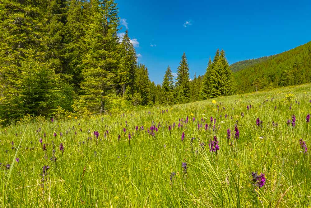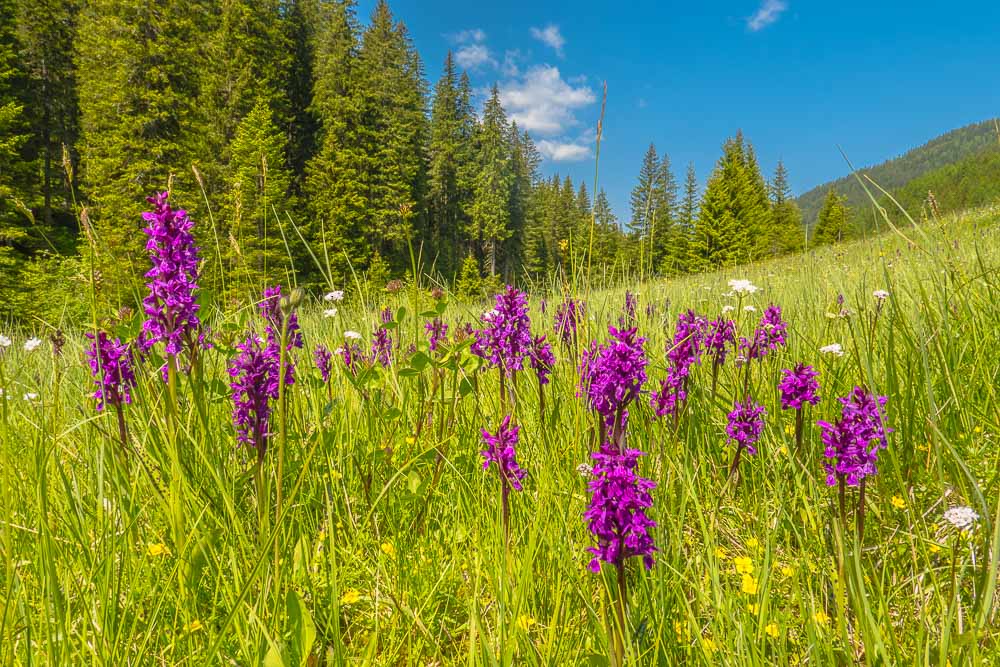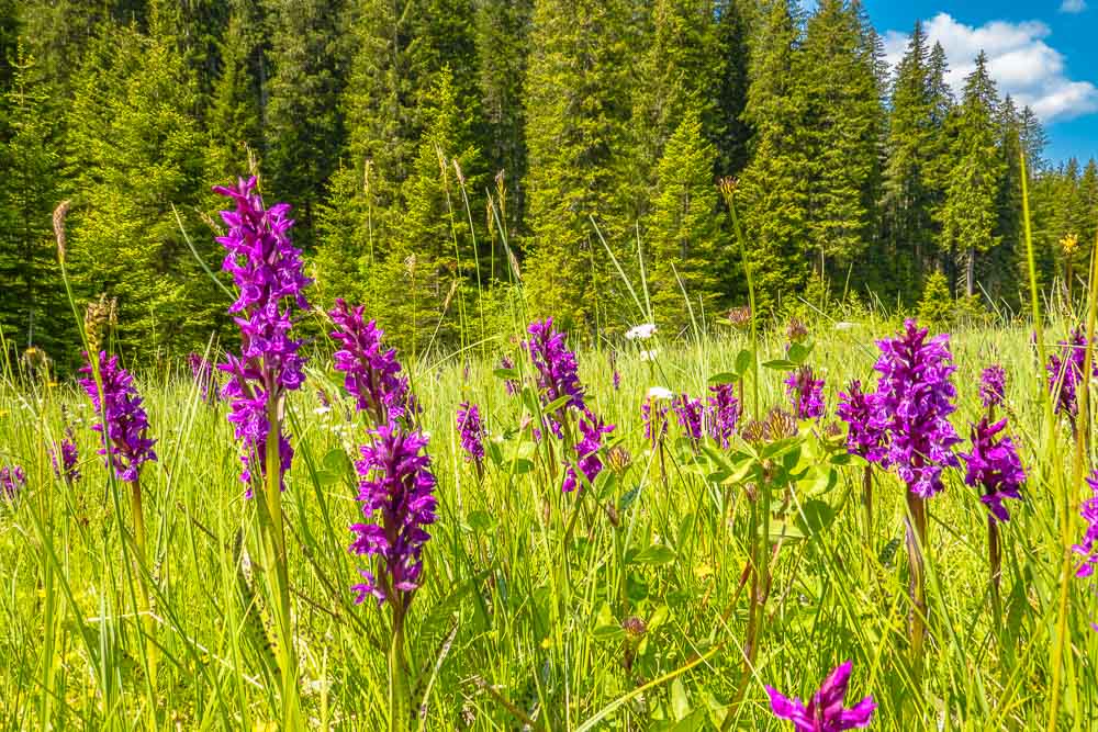 ... mit tausenden Blüten des breitblättrigen Knabenkrauts (Dactylorhiza majalis)