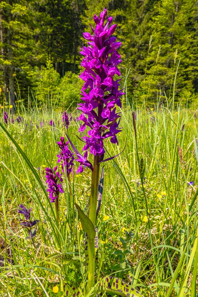 Breitblättriges Knabenkraut (Dactylorhiza majalis), dazwischen auch hier wieder Fuchs´sches Knabenkraut (Dactylorhiza Fuchsii) in der Variante sudetica.