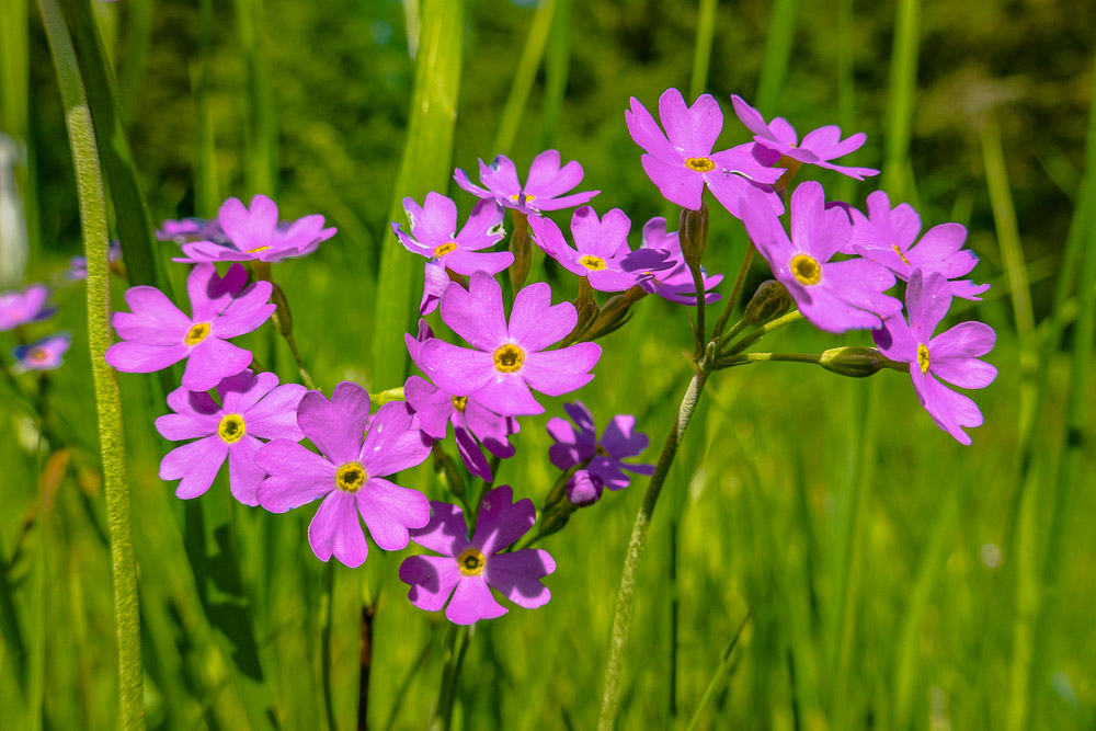 Mehlprimel (Primula farinosa) am Straßenrand.