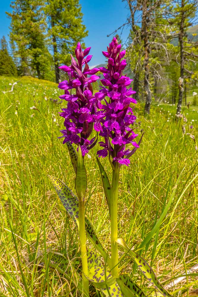 Dazwischen auch einige hellere Blüten - das Fuchs´sche Knabenkraut (Dactylorhiza Fuchsii) in der Variante sudetica.