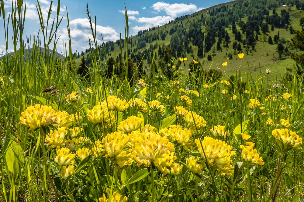 Etwas die Straße hinunter blüht neben der Straße Alpen Wundklee (Anthyllis vulneraria subsp. alpestris) ...
