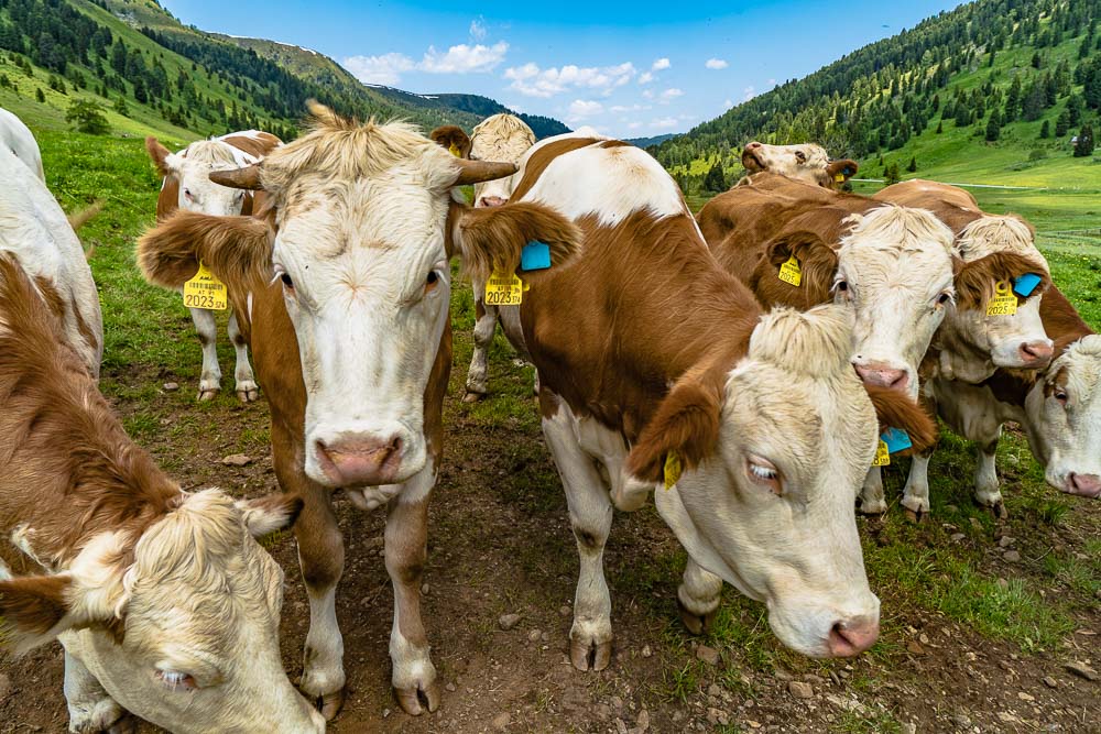 Eine Herde neugieriger Kühe schaut mir interessiert zu, wie ich mich mit meinem Rad durch ein Gatter quäle.
