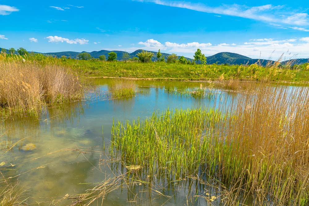 The reed is growing fast. I saw some frogs, which jump into thw water when they realize I´m coming.