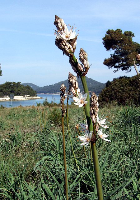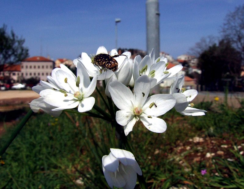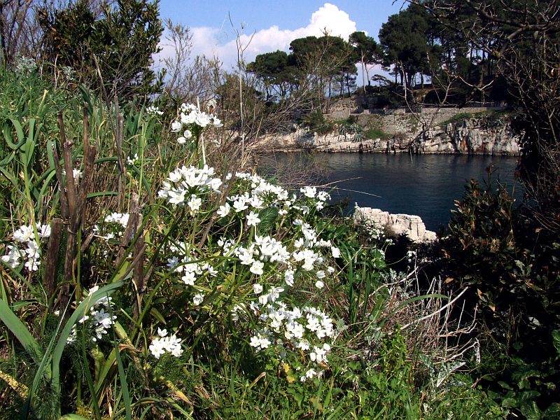 Und wieder Neapolitanischer Lauch (Allium Neapolitanum) nahe einem Felsen bei der Hafenausfahrt