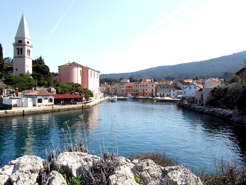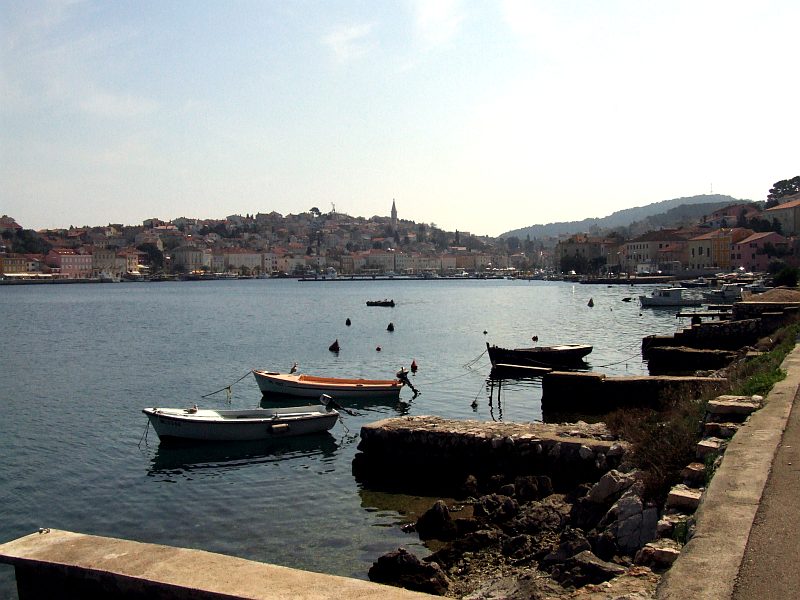 Blick über Mali Losinj. Die Erhebung im Hintergrund ist das Osorscica - Gebirge mit dem Televrin (588 m), das ich am Montag 7.4. erklimmen werde.